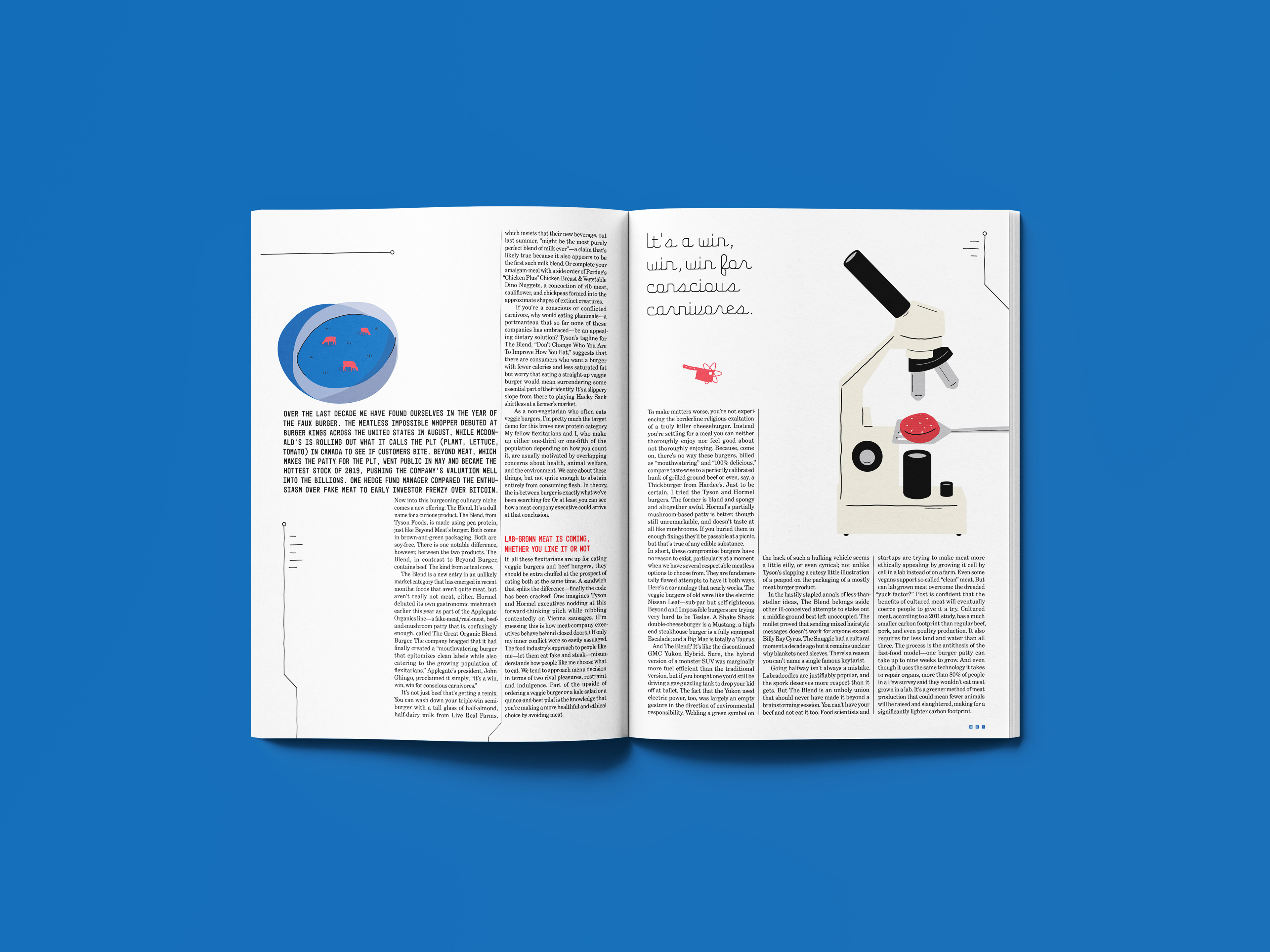 The following is an editorial design I was assigned to create with my own concepts & illustrations, in the art style of Paul Blow.